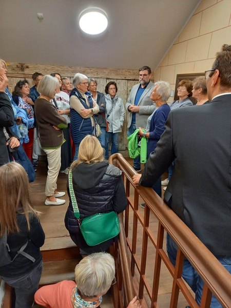 Zu einer besonderen Rathausführung trafen sich die Frauen von St. Pius zusammen mit Pfarrer Pfeffer und Praktikant Manuel Asam. Bürgermeister Christian Schweiger zeigte den interessierten Teilnehmerinnen und Teilnehmern zuerst das neurenovierte „Rauch-Haus“. Dort konnte man sehen, dass dem Denkmalschutz Rechnung getragen und alles sehr liebevoll instandgesetzt wurde. Allerdings ist nicht alles praktisch, z. B. die Deckenhöhen. Somit können die Räume nur eingeschränkt für die Verwaltung genutzt werden. Im angrenzenden „Ettner-Haus“ wurden die Räume nach modernsten Gesichtspunkten renoviert und es wurde auch ein Fluchtweg gebaut, der interessante Perspektiven eröffnet. Dort befindet sich nun auch das Büro des Bürgermeisters. Doch auch in den beiden Hauptgebäuden wurde viel investiert, um den Mitarbeitenden und den Besuchern eine freundliche und zweckmäßige Atmosphäre zu bieten. In den letzten Jahren wurde z. B. viel in die EDV-Anlagen investiert, um diese zeitgemäß nutzen zu können. Herr Schweiger informierte aber auch über anstehende Projekte, z. B. im Bereich Wohnungsbau.
