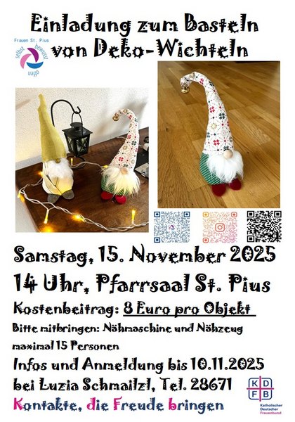 Zur diesjährigen Jahresmitgliederversammlung konnte die Vorstandschaft des Frauenbundes St. Pius Ende Juli eine große Anzahl von Teilnehmerinnen begrüßen. Fast die Hälfte der zu diesem Zeitpunkt 82 Mitglieder waren gekommen. Um 18 Uhr fand der traditionelle Gedenkgottesdienst für die verstorbenen Mitglieder statt. Gleichzeitig ehrten die Frauen die Apostelin Maria Magdalena und gestalteten den Gottesdienst mit. Pfarrer Pfeffer wies in seiner Predigt darauf hin, dass im Neuen Testament Frauen erwähnt werden, die Jesus mit ihrem Vermögen unterstützten. Damit war aber nicht nur finanzielle Unterstützung gemeint, sondern allgemein Engagement für Jesus und die Gemeinschaft. Und genauso unterstützen heute starke Frauen durch ihr Engagement die Gemeinschaft in Kirche und Welt. Diesen Gedanken griff die Vorstandschaft nochmals bei der Begrüßung auf: Die engagierten Mitglieder sind ein Vermögen für die Vorstandschaft, denn ohne sie läuft nichts im Verein. In diesem Sinne wurden langjährige Mitglieder geehrt: Helga Jarus und Olga Schiller für 10 Jahre, Ingrid Bergemann, Vroni Frenzl, Christine Mayrhofer und Hannelore Wachter für 20 Jahre, Hilde Brücklmayer, Maria Kinlein, Eva Leukert und Anna Wagner für 25 Jahre und Hilde Pschierl für 30 Jahre. Auch zwei Neumitglieder wurden begrüßt: Ewa von Kolontaj und Claudia Neumeier. Dann stellte die Vorstandschaft das Programm für die nächsten Monate vor: Im August steht als Erstes das traditionelle Kräuterbuschenbinden zum Verkauf am Fest Mariä Himmelfahrt auf dem Programm. Wer es sportlich mag, kann sich mit einer Gruppe am Dirndl- und Lederhosenlauf beim Volksfest beteiligen. Im September führt Bürgermeister Christian Schweiger eine Gruppe durch das Rathaus. Bei den Regional- und Umwelttagen verkaufen die Frauen von St. Pius Kaffee und Kuchen für einen guten Zweck. Im Oktober findet ein gemeinsamer Filmabend mit dem KDFB Affecking statt. Einen Vortrag über das wichtige Thema Vorsorgevollmacht und Patientenverfügung bietet der Frauenbund im November an. Handwerklich geschickte Personen sind zum Nähen eines dekorativen Wichtels eingeladen. Das Jahr 2025 endet mit der Adventsfeier und einem Stand beim Affeckinger Christkindlmarkt. Nach dem offiziellen Teil saßen die Frauen noch lange beisammen und am Ende haben sich noch fünf Frauen, die als Gäste bei der Versammlung anwesend waren, dem Frauenbund St. Pius angeschlossen.